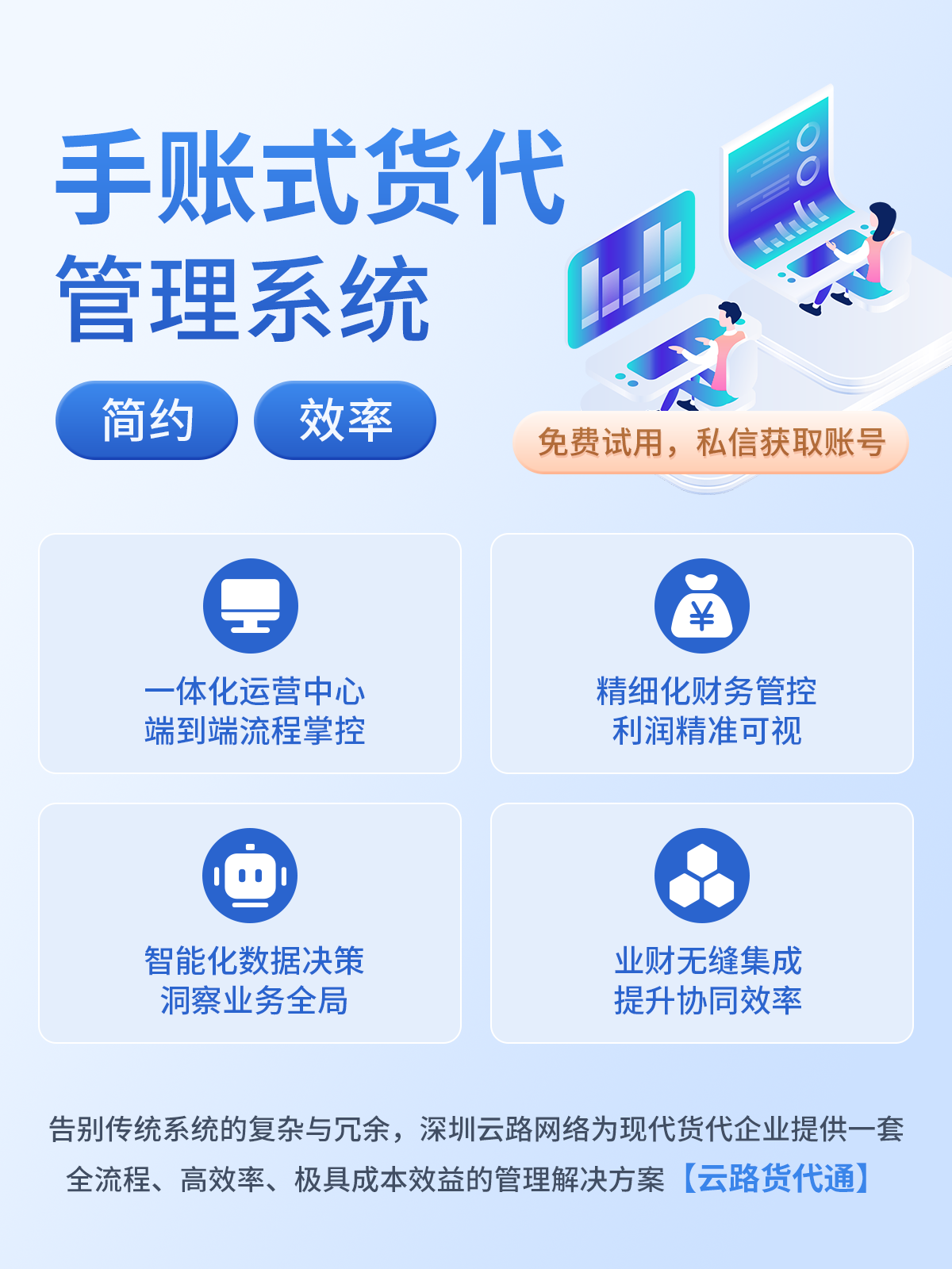 告别传统系统的复杂与冗余,深圳云路网络为现代货代企业提供一套全流程、高效率、极具成本效益的管理解决方案:云路货代通✈️