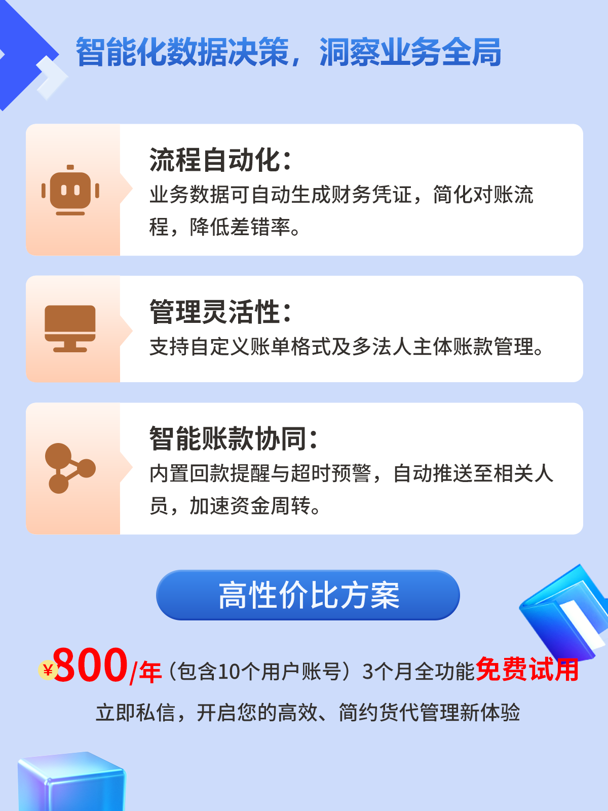 价格:800 元 / 年(包含 10 个用户账号) 体验:3 个月全功能免费试用 立即私信,开启您的高效、简约货代管理新体验